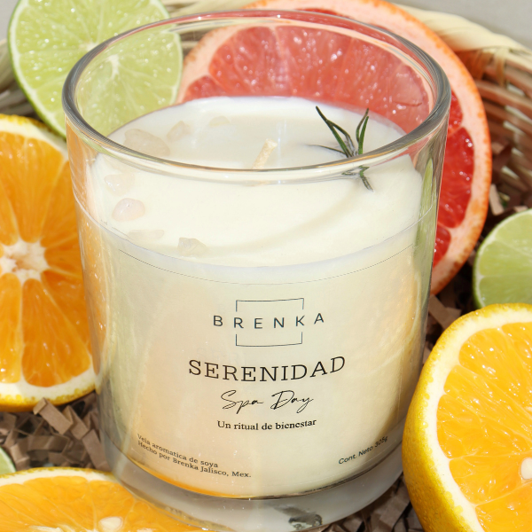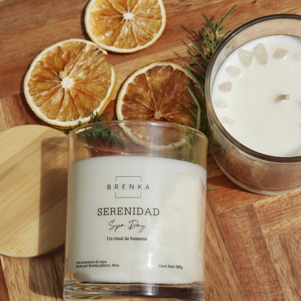 🕯️ Vela de Serenidad: Cítricos, Romero y Bergamota :Despierta tus sentidos y encuentra tu centro. Esta vela fusiona la frescura vibrante de los cítricos y la bergamota con las notas herbales del romero, creando una atmósfera de paz y enfoque. Decorada a mano con cuarzos transparentes y ramitas de romero natural. Es el recordatorio perfecto para respirar hondo y resetear tu día.